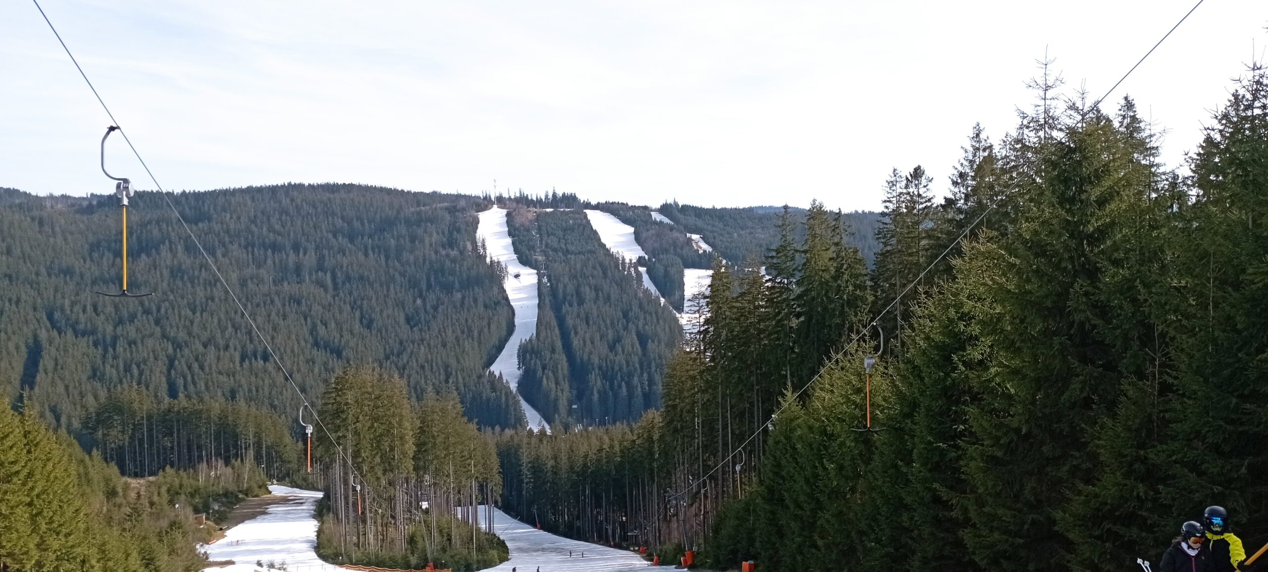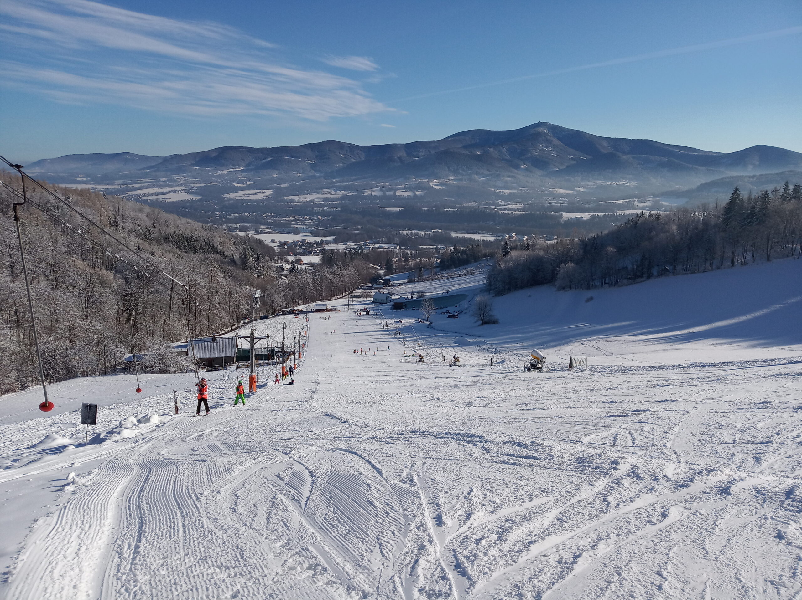 Skiareál Bílá Jih (kotva) v provozu Sever...